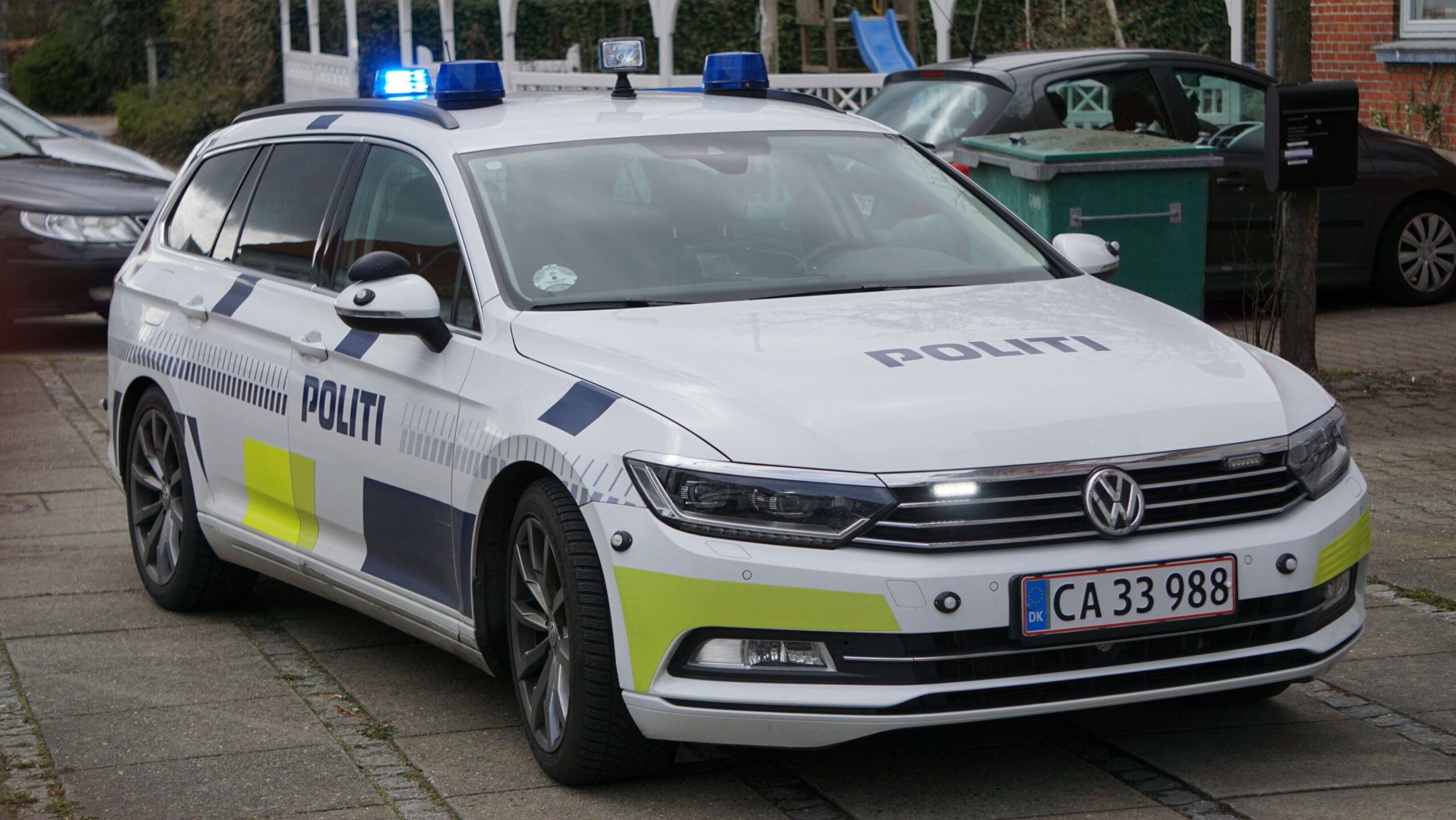 Politibil i Vendersgade d. 8. april 2021.