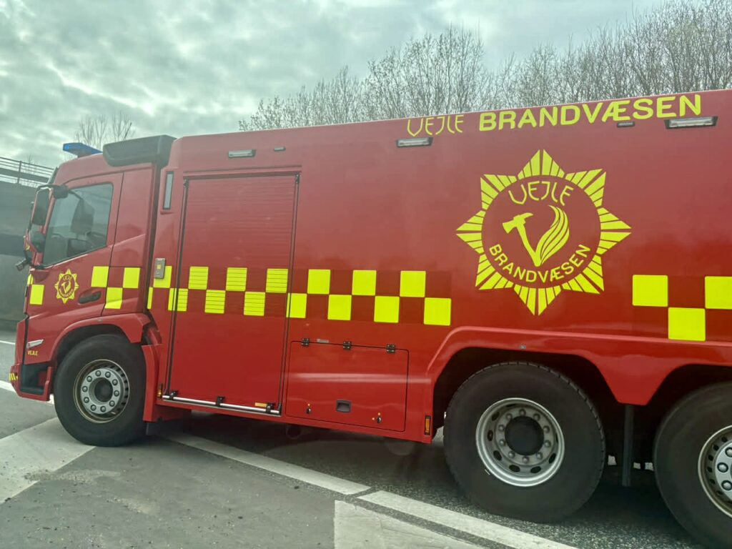 Der er onsdag eftermiddag opstået brand i en dyretransport med grise ved motorvejskryds Skærup på strækningen fra Vejle mod Fredericia.