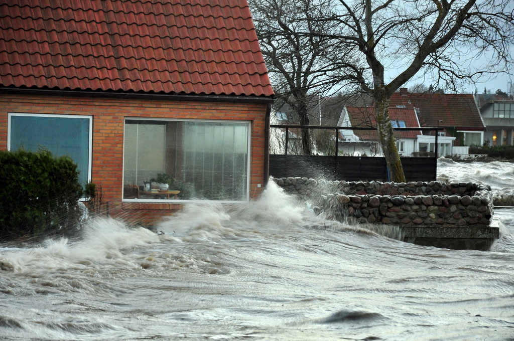 Oversvømmelser kan være alvorlige, det så vi f.eks. i december 2013, hvor stormen ’Bodil’ forårsagede omfattende oversvømmelser i beboede områder omkring Roskilde Fjord. Foto- Martin Stendel, DMI